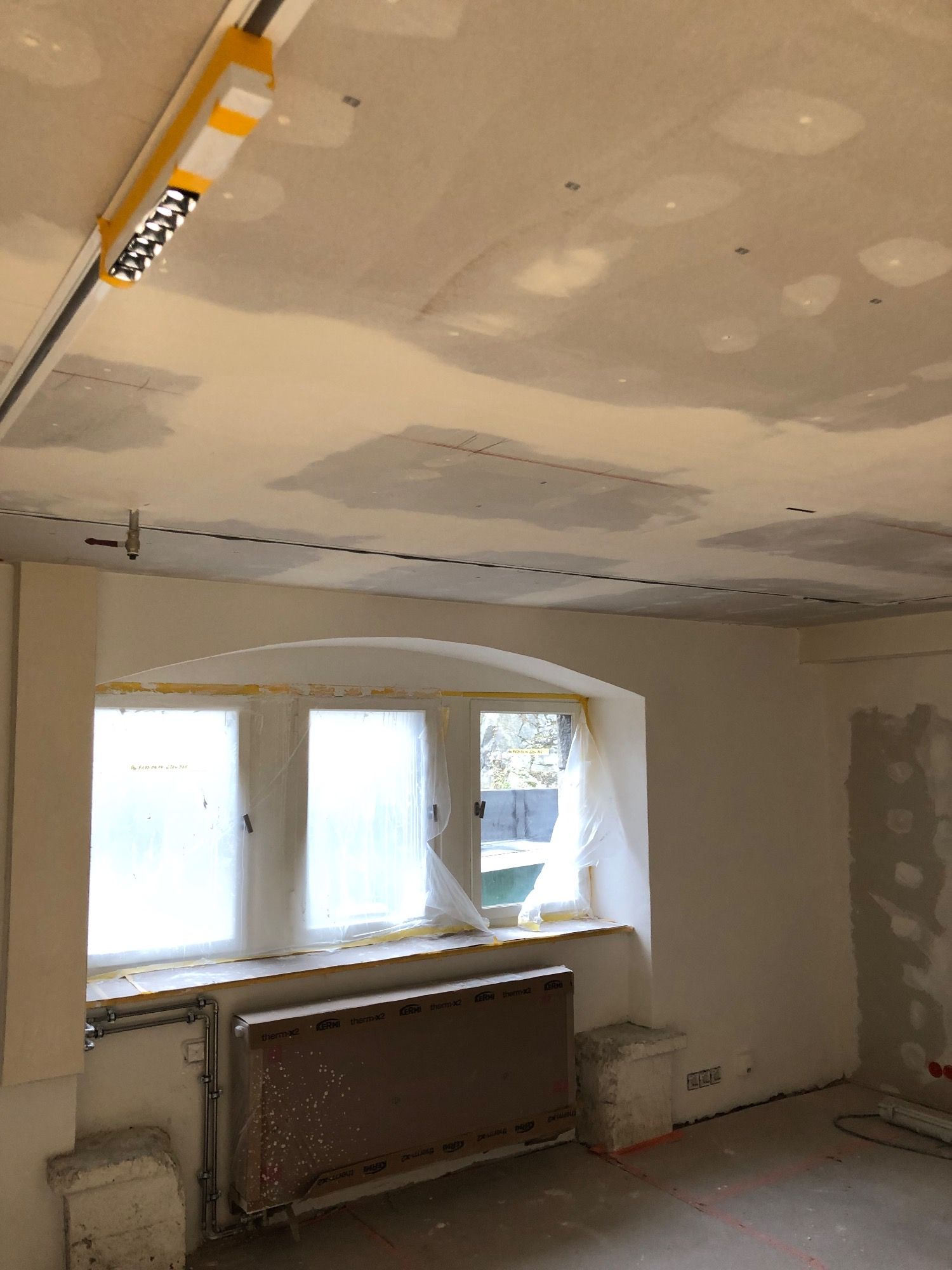 Bis auf die Wände, diese sind mittlerweile verputzt, haben hier noch keine weiteren Arbeiten stattgefunden.
